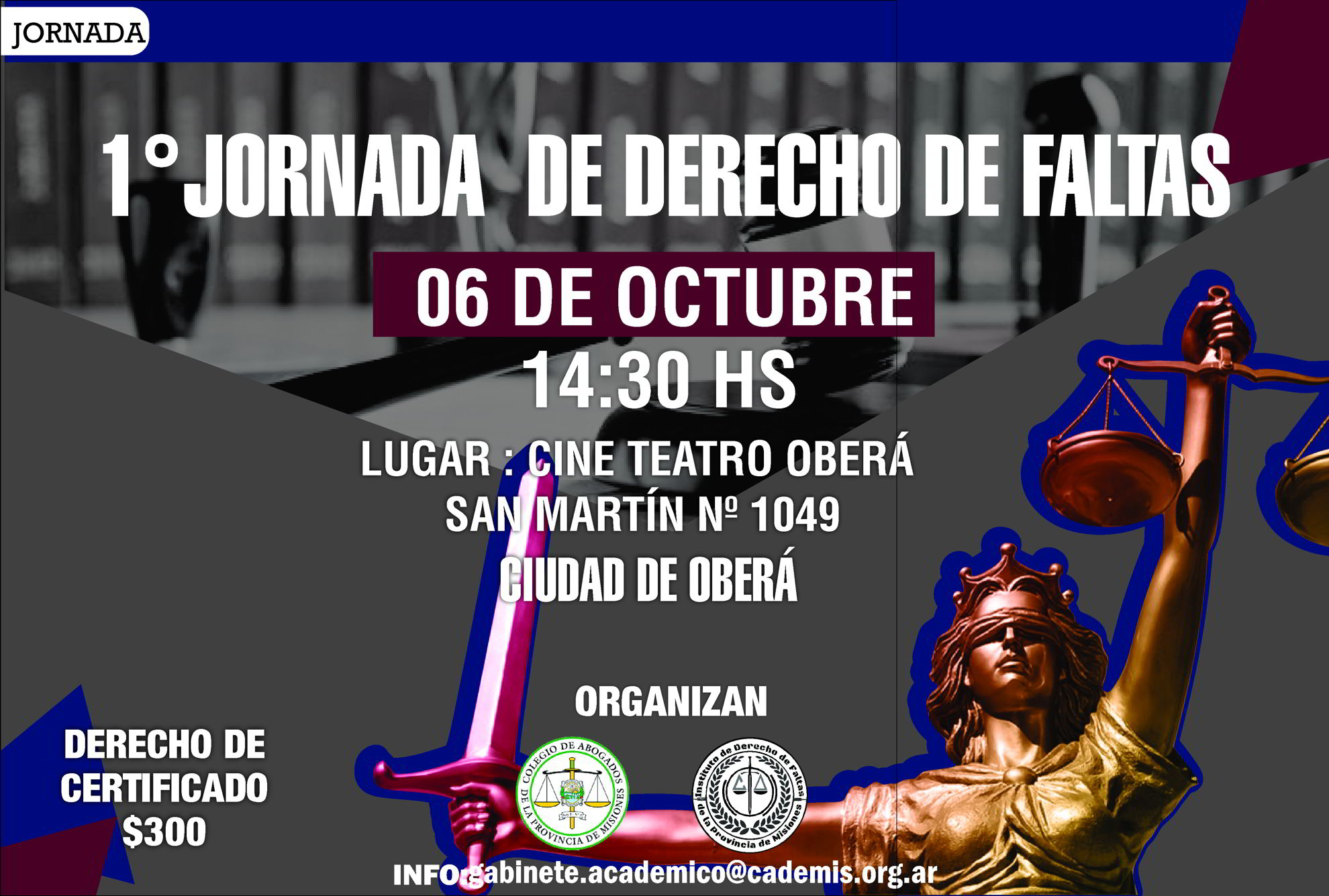 Si desean el certificado lo pueden hacer abonando personalmente en la SEDE OBERÁ del Colegio de Abogados o bien por transferencia a las siguientes cuentas enviando su comprobante de pago a gabinete.academico@cademis.org.ar