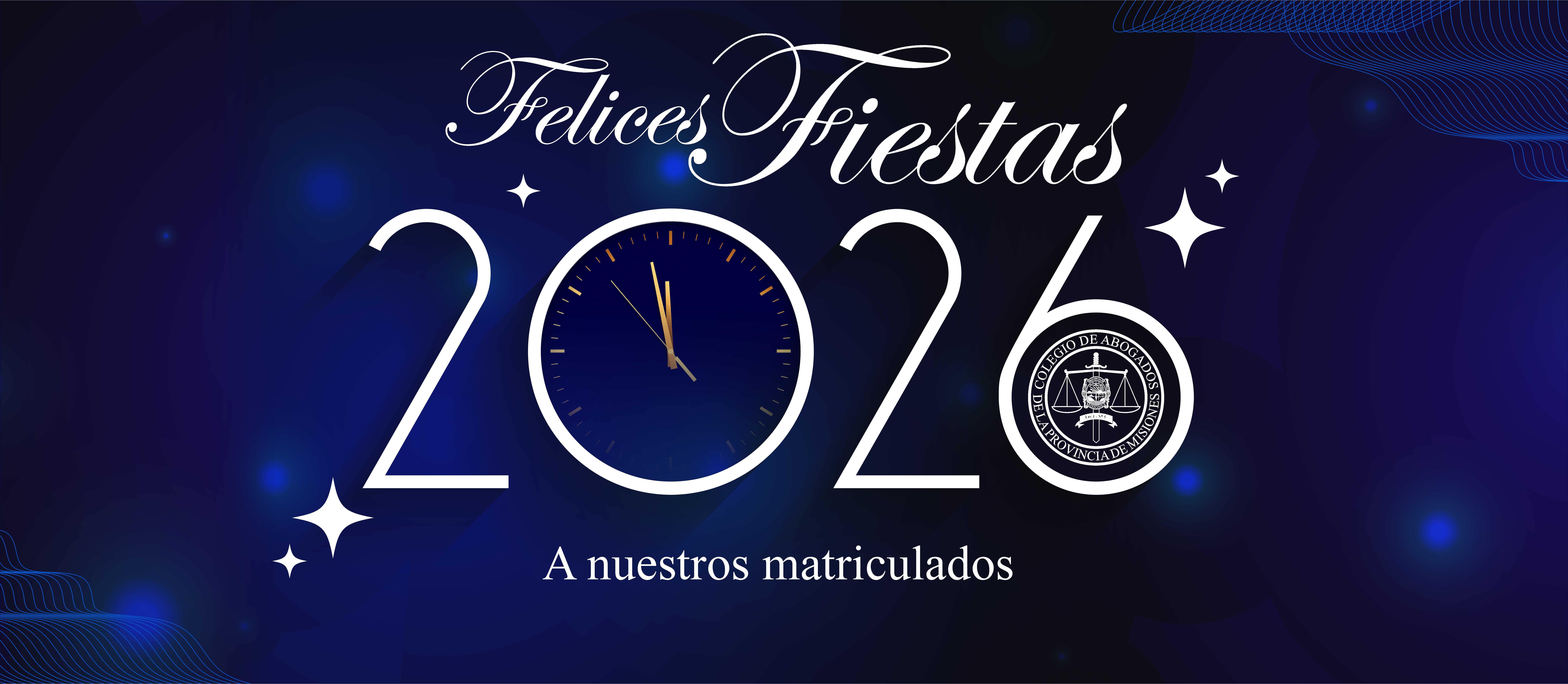 El Colegio de Abogados de la Provincia de Misiones hace llegar su más cordial saludo con motivo de las próximas fiestas. Deseamos expresar nuestro reconocimiento por el compromiso, la responsabilidad y la vocación de servicio con que cada uno de ustedes honra el ejercicio de la abogacía en nuestra provincia.